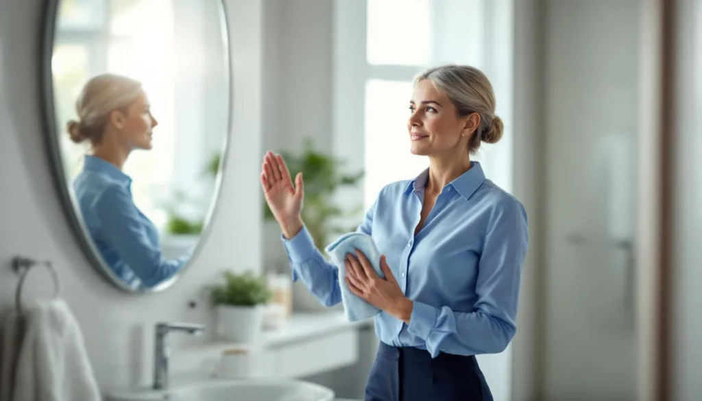 Es ist auch wichtig, den Spiegel bei geringer Beleuchtung zu reinigen, um die Trocknung des Reinigungsmittels zu verlangsamen, was zu weniger Streifen führt. Vermeiden Sie die Verwendung von zu viel Reinigungsmittel; weniger ist oft mehr, um Rückstände und Schlieren zu verhindern.